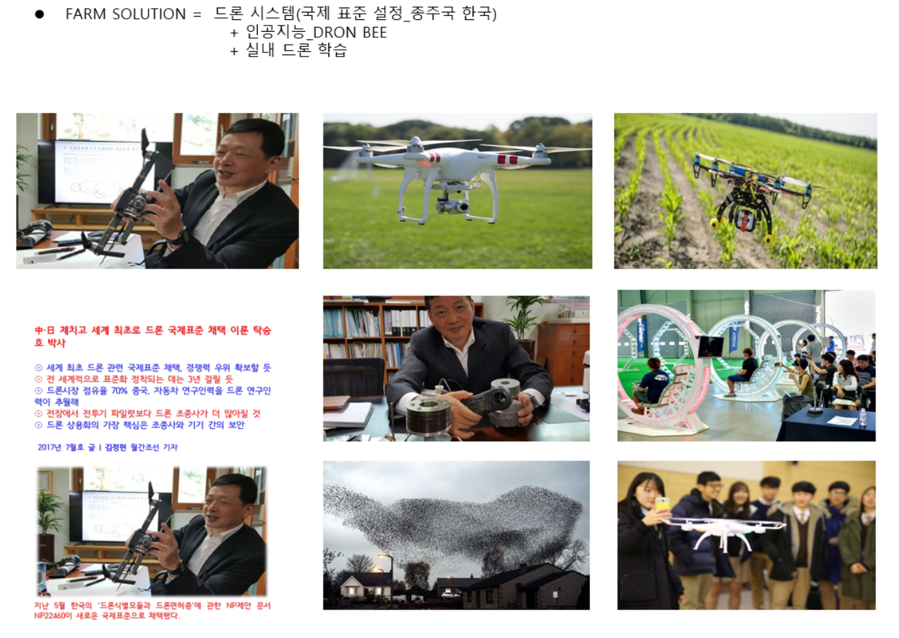 국제 표준 설정 드론시스템, 인공지능 DRON BEE, 실내드론 학습을 통한 FARM SOLUTION 제공